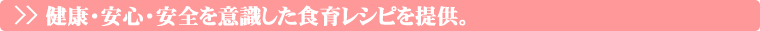 | 食育や健康管理、食の安全への意識が高まっている今、子どもから大人、高齢者までの広い層に向けて、生活習慣病やその予防、健康管理、ダイエットといった様々なニーズに応える「食」を届けたい。 当社では、服部幸應先生監修レシピを基本とし、地域食文化とコラボレーションする「ザ・食育レシピ」による『食育膳』を全国の皆様に発信しています。 |